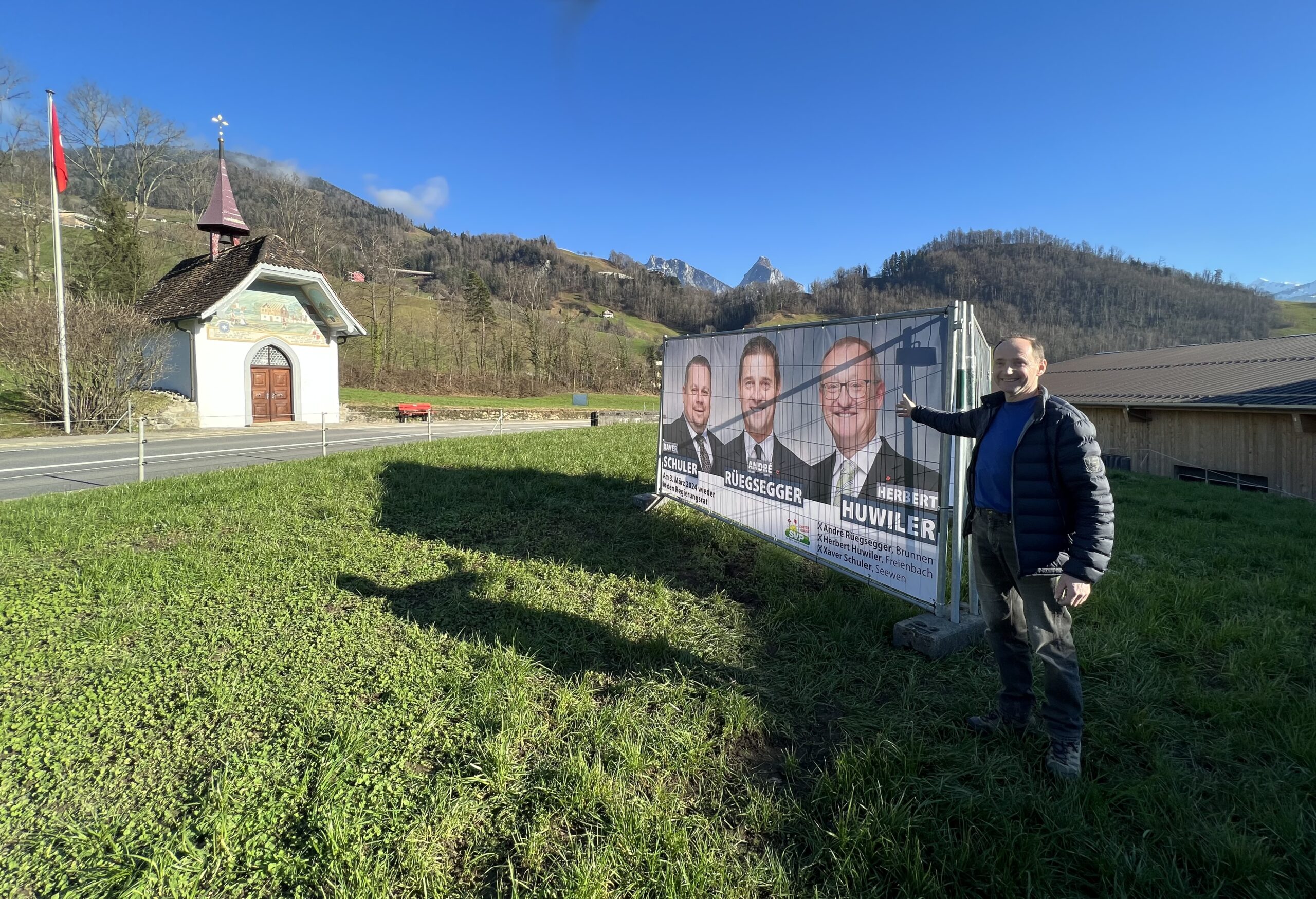 Unser Kantonsrat David Beeler beim Plakatieren für die Regierungsratswahlen 2024